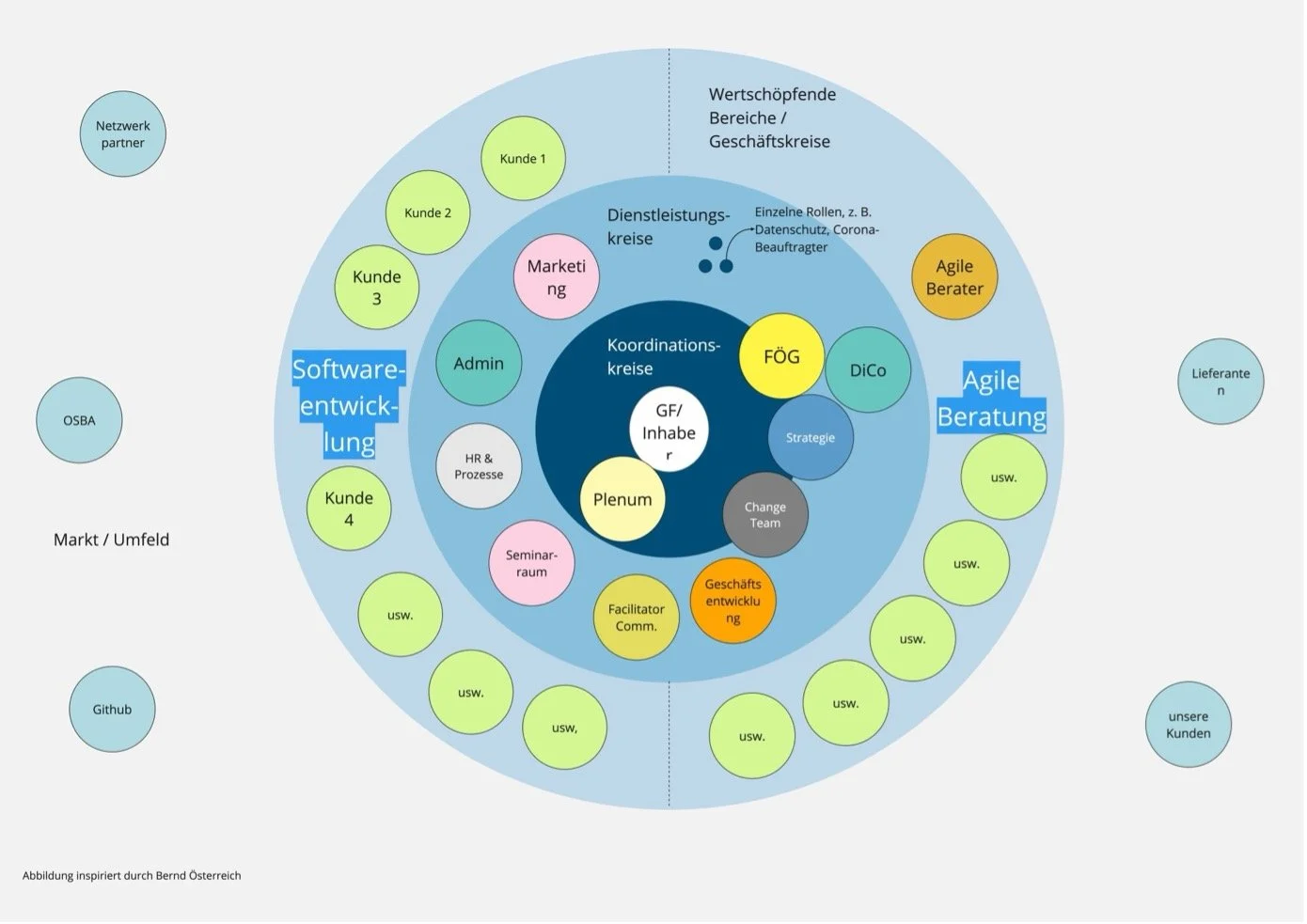 Nordeck’s organizational model pre-unFIX. The commitment to self-organization and the shift away from classic line management already evident.