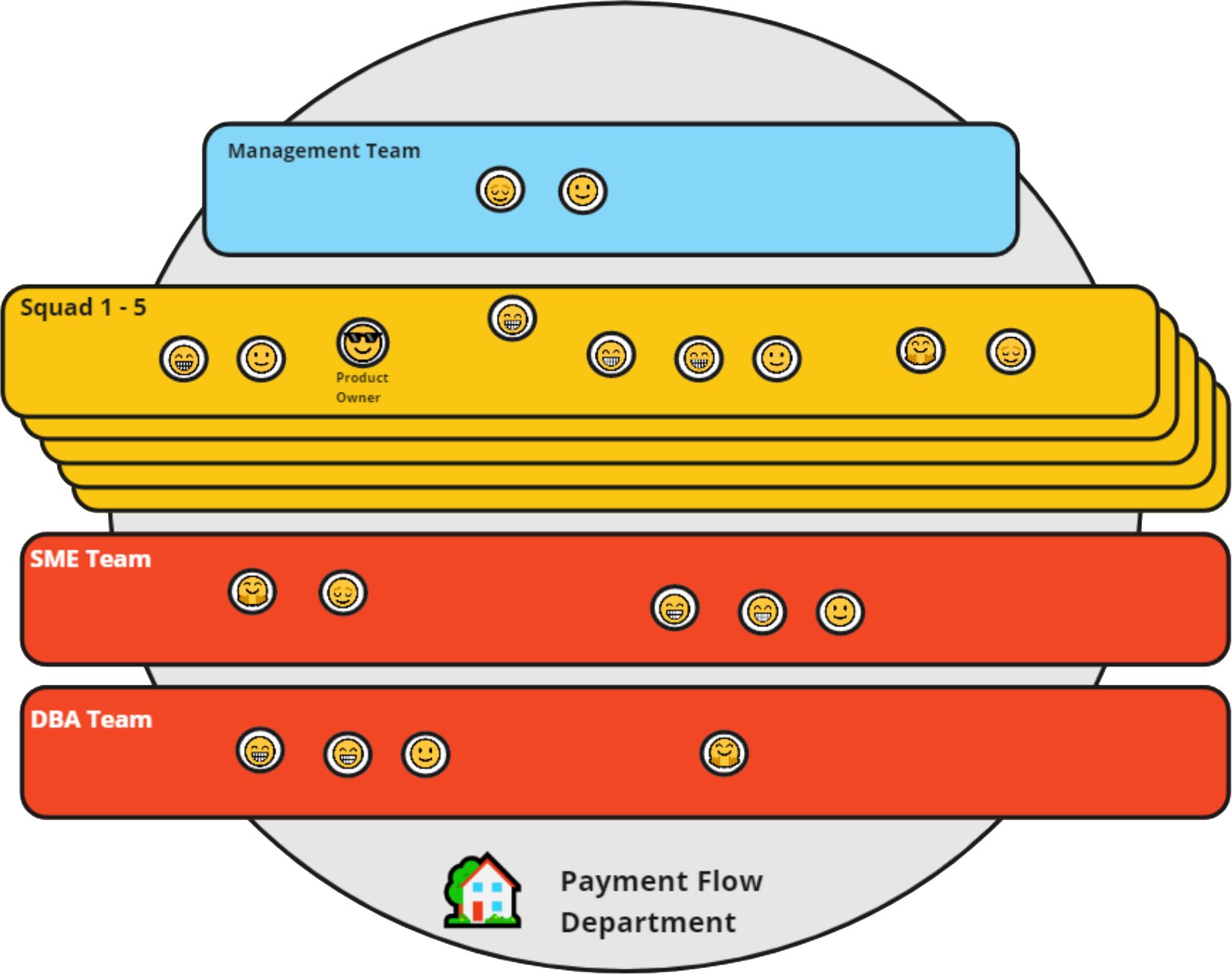 Within four departments responsible for the worldwide online payment product they first started to mimic the so-called “Spotify model”. Luckily they did not copy-and-paste it but gave it their own flavor. But in essence, they formed an agile-matrix organization. The one thing that stood out was that the teams soon were more and more autonomous, they decided what to do by when, and how! That made a big difference in the company. The step after that was introducing a DevOps way of working so that the teams could build and run their own features.