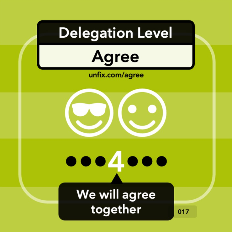 Delegation Levels help you to clarify who decides on the topic you delegate. Additionally, they define how much information you want to share before or after making decisions.