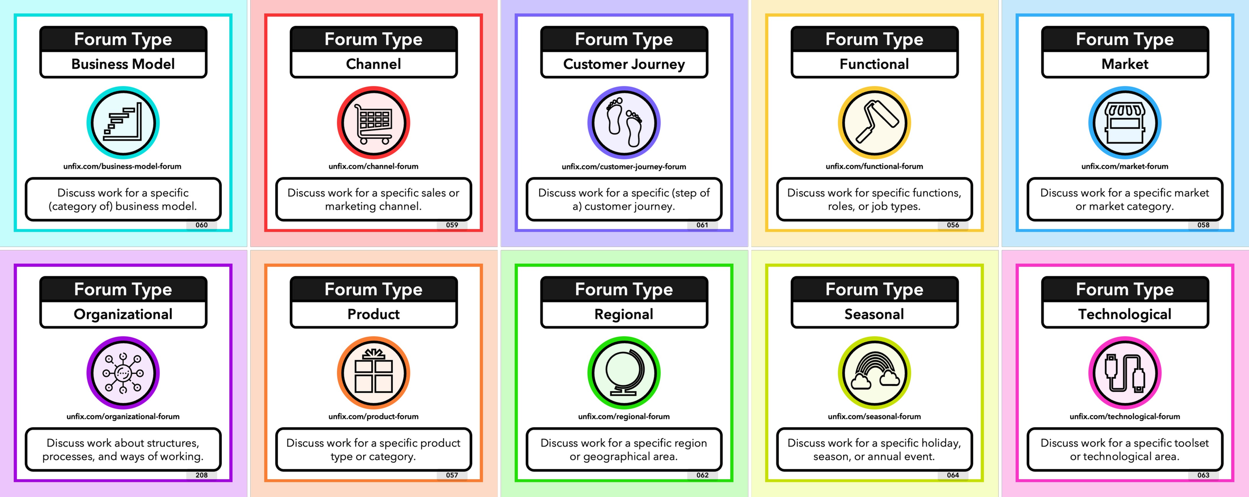 Forum Types: Business Model • Channel • Customer Journey • Functional • Market • Organizational • Product • Regional • Seasonal • Technological