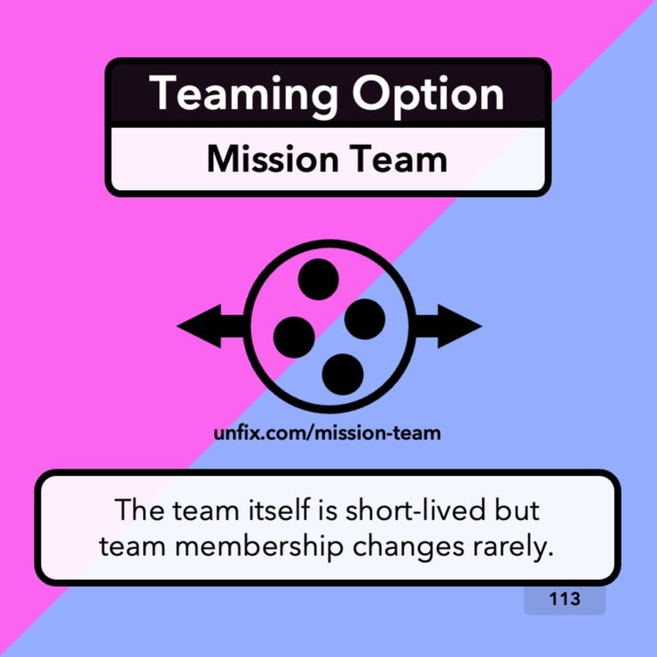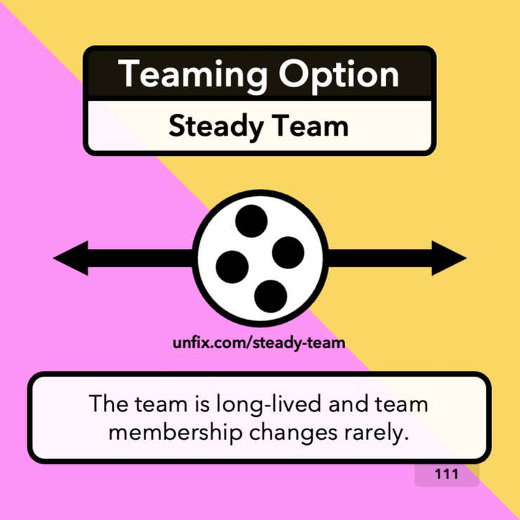 The best teaming option depends on how the benefits and drawbacks of each pattern play out for your organization. That is for you to figure out. We give you the options to consider and hope you don't assume that steady teams are always the best option. Sometimes, they're not.