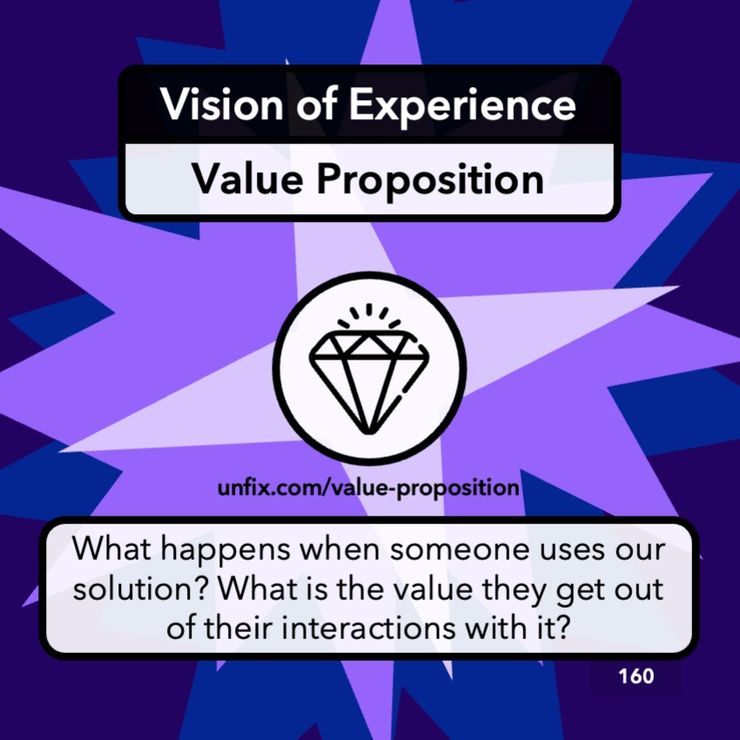 The Vision of Experience can be defined with tools such as a Job-to-Be-Done template, a Value Proposition Canvas, or a Product Vision Canvas.